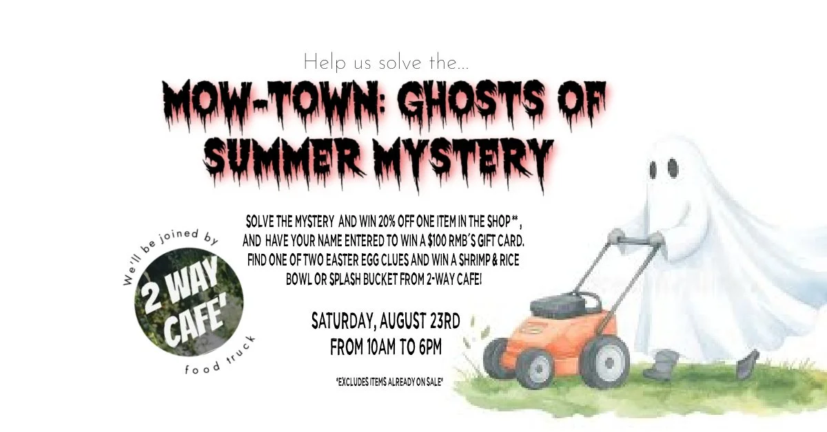 Step into the summer of 1986 and uncover a ghostly whodunit set in our antique mall’s former life… as a lawnmower repair shop.